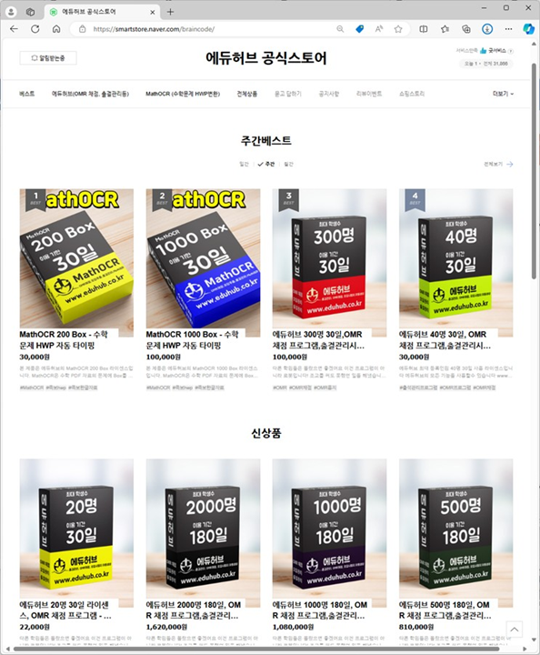 라이선스 구매 페이지: 에듀허브 공식 스토어 (https://smartstore.naver.com/braincode)