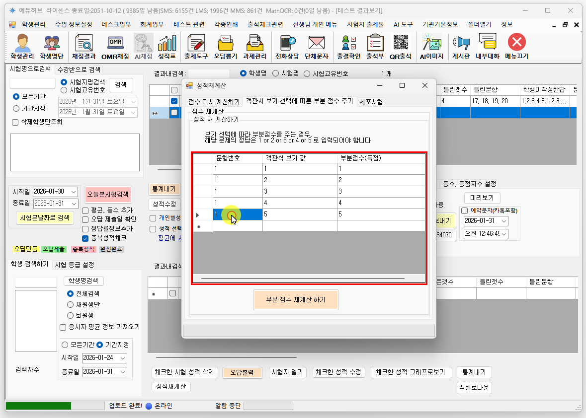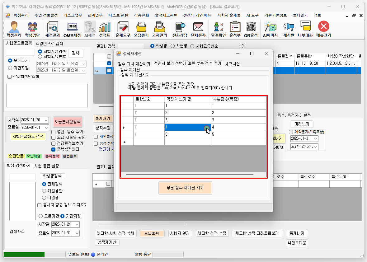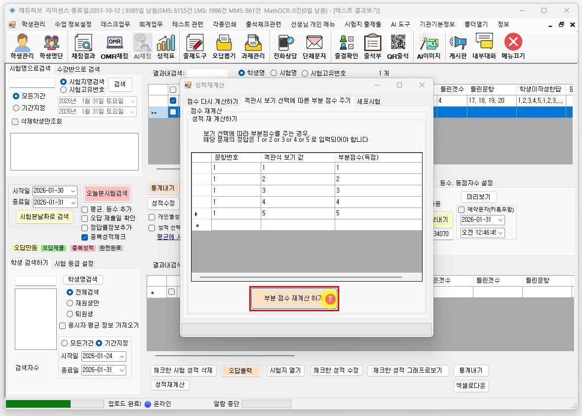 성적 재계산 버튼을 눌러 성적을 다시 계산합니다.