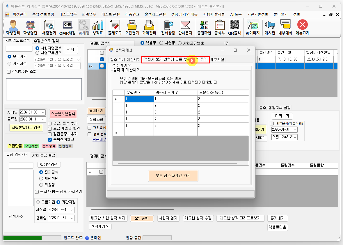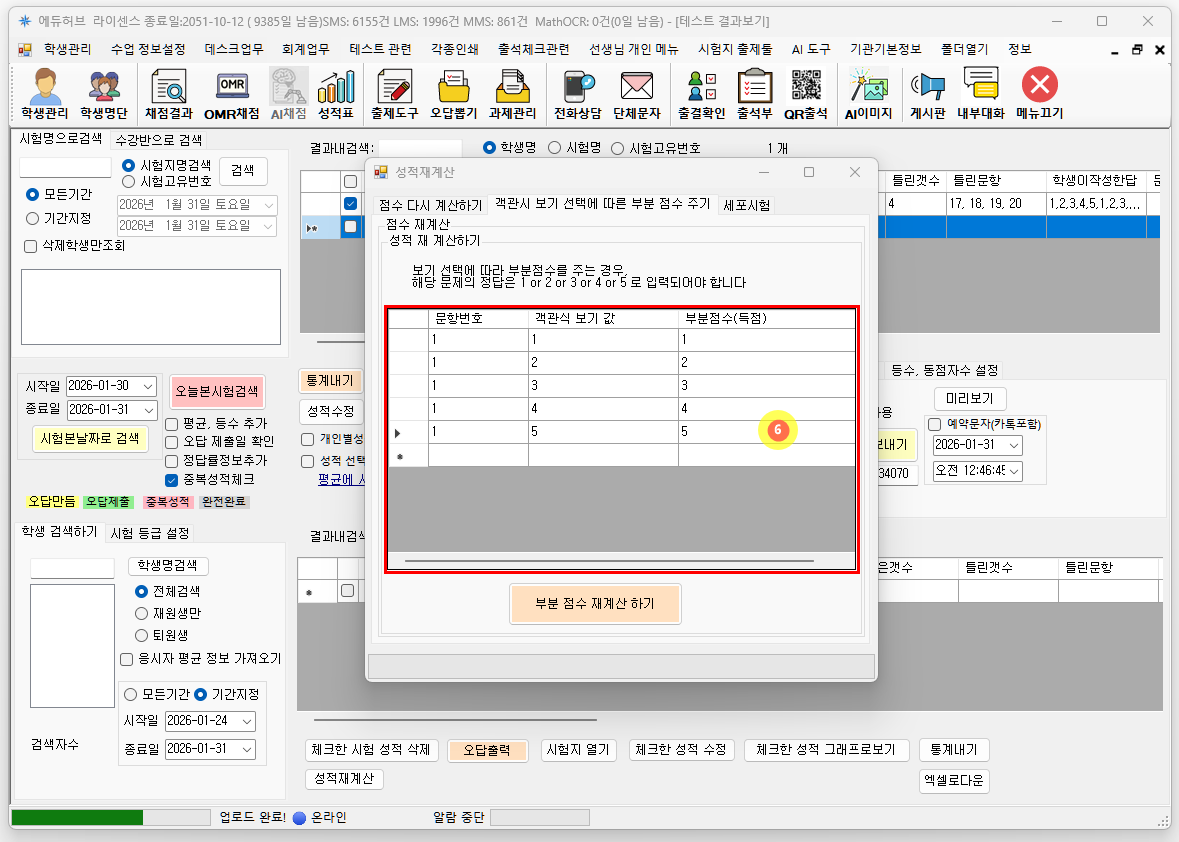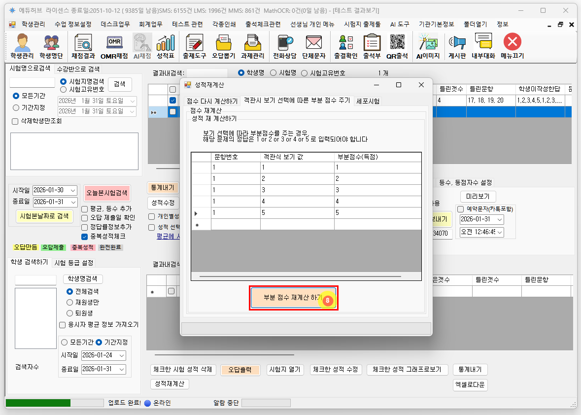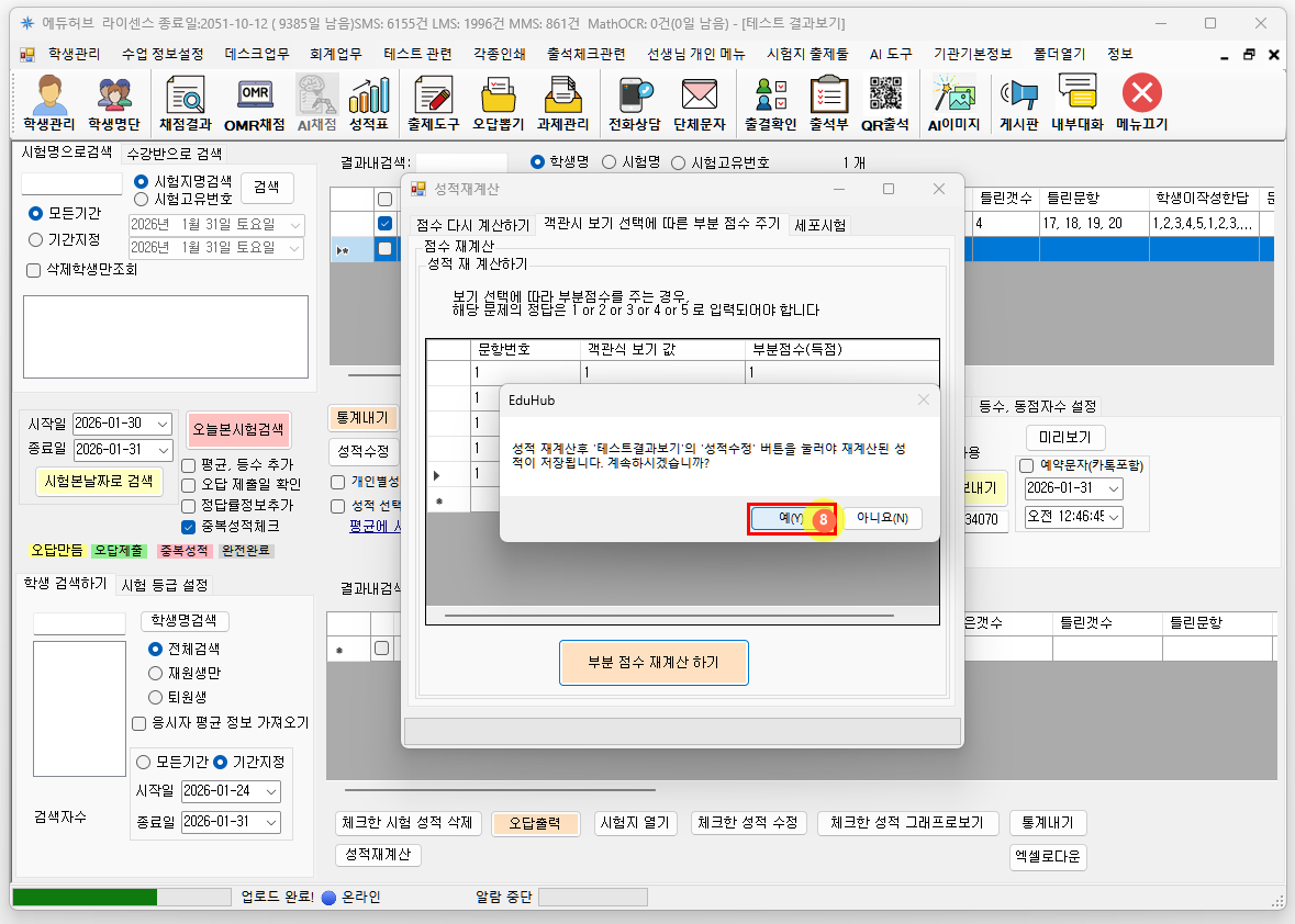 성적 재계산 버튼을 눌러 성적을 다시 계산합니다.